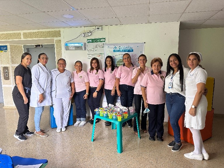 El paso 10 de la estrategia IAMII se centra en la creación de una red de apoyo que extienda la atención más allá de las instituciones de salud, involucrando a la comunidad, por lo cual y considerando el papel tradicional de las Damas Rosadas en muchos entornos de salud, las cuales se enfocan en brindar acompañamiento y apoyo emocional a las madres y sus familias, especialmente durante el posparto y la crianza, en la ESE Hospital Rosario Pumarejo de López, contamos un equipo sólido y dispuesto a apoyar a las mujeres embarazadas, niñas, niños y adolescentes, por lo cual se realizan permanentemente actividades con apoyo de las damas rosadas. En esta oportunidad la líder de la estrategia IAMII Luz Angela Hernández se encuentra fortaleciendo capacidades y practicas en salud